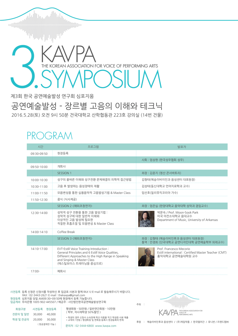 페이지 정보 작성자 최고관리자 댓글 0건 조회 40회 작성일 19-10-23 07:27 목록 제3회 한국 공연예술발성 연구회 심포지엄 / 공연예술발성 - 장르별 고음의 이해와 테크닉 본문 . 이전글제4회 한국 공연예술발성 연구회 심포지엄 / 공연예술발성 - 발성테크닉의 원리와 비교 및 적용 19.10.23 다음글제2회 한국 공연예술발성 연구회 심포지엄 / 공연예술발성 - 호흡 19.10.23