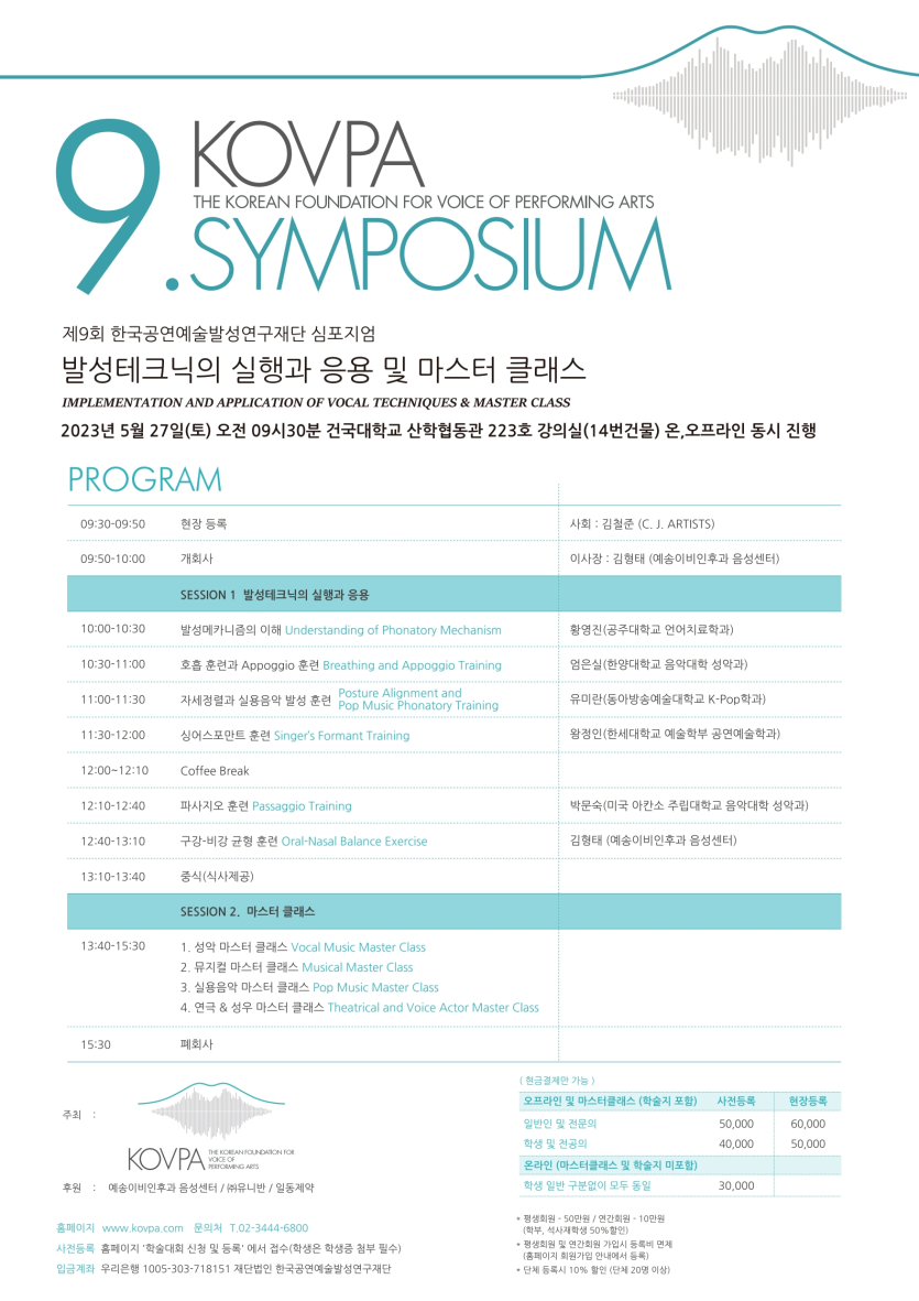 페이지 정보 작성자 최고관리자 댓글 0건 조회 35회 작성일 23-01-18 07:36 목록 제9회 한국 공연예술발성 연구재단 온,오프라인 심포지엄 / 발성테크닉의 실행과 응용 및 마스터 클래스 IMPLEMENTATIO… 본문 . 이전글제10회 한국 공연예술발성 연구재단 온,오프라인 심포지엄 / 목소리의 과학: 발성메카니즘과 장르별 비밀 The science of voices: Vocal mechanism and genre secrets 25.07.27 다음글제8회 한국 공연예술발성 연구재단 심포지엄 / 발성테크닉의 실행과 결과 PRACTICE AND RESULTS OF VOCAL TECHNIQUES 22.02.07